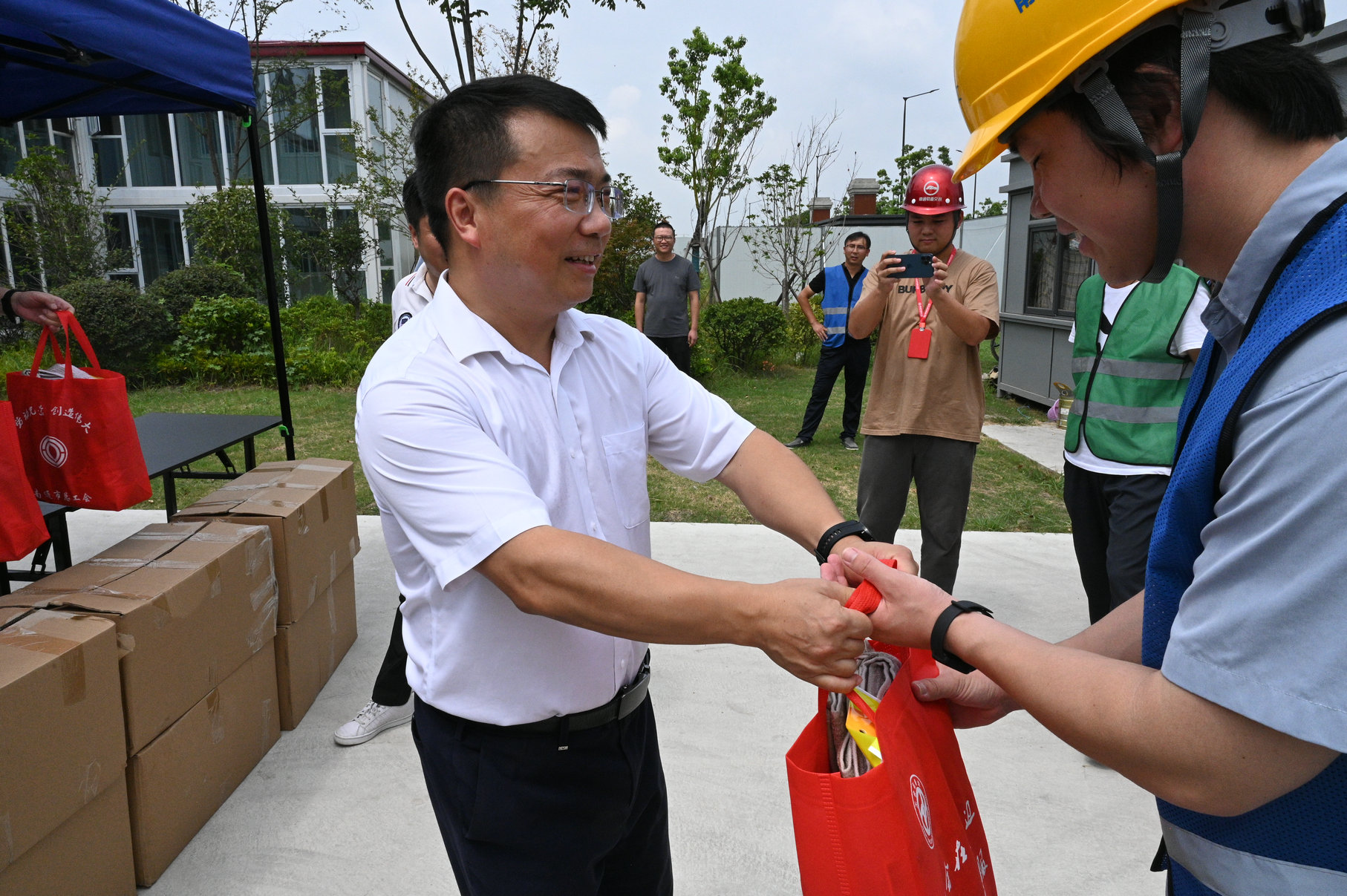 在项目现场,成飞等领导向奋战在高温一线的施工工人致以崇高的敬意和亲切的慰问,感谢他们的辛勤付出,将防暑降温物品分发到一线职工手中。成飞强调,要把防暑降温工作和劳动安全保障措施落实到位。他叮嘱工人们:“高温作业时,一定要注意防暑降温、注意安全、保重身体!”他要求项目部根据高温天气特点,加强安全生产高温保护工作,落实各项防暑降温措施,改善劳动条件和作业环境,合理安排作业时间,强化服务保障措施,保护好职工的合法权益,切实保障职工身体健康和人身安全。