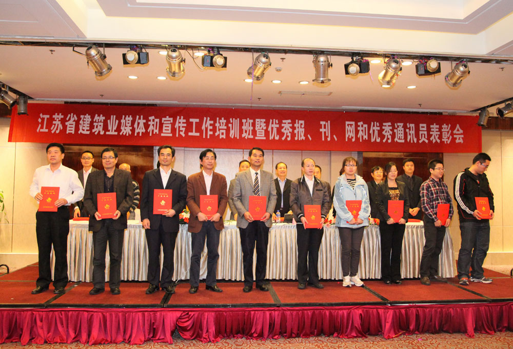 2012年10月30日,江苏省建筑业媒体和宣传工作培训班暨优秀报、刊、网和优秀报、刊、网和优秀通讯员表彰会在南京曙光国际大酒店举行。全省各市县建筑(行)业协会、会员企业宣传工作负责人、行业和企业宣传通讯员、行业和企业报、刊、网负责人及采编人员共300余人参加了会议。省建协副秘书长刘国平主持了会议。