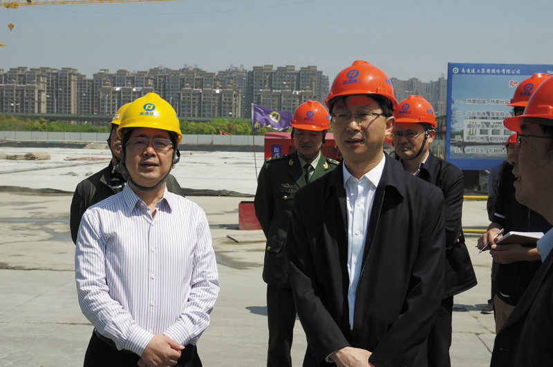 4月28日上午,南通市副市长吴永宏、市政府副秘书长景安以及市代建办、崇川区教育局的领导到我公司一分公司承建的新区学校项目现场视察。集团公司董事长张向阳、一分公司总经理邱林、副总经理兼项目经理李海峰等陪同视察。