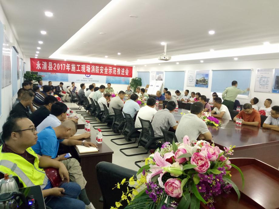 会上,与会者听取了项目部的汇报,进行了现场参观。永清县公安消防大队徐斌参谋详细推介了汤林御府项目在消防安全管理上的优秀做法,要求全县的工程项目都要认真学习汤林御府项目的先进经验。