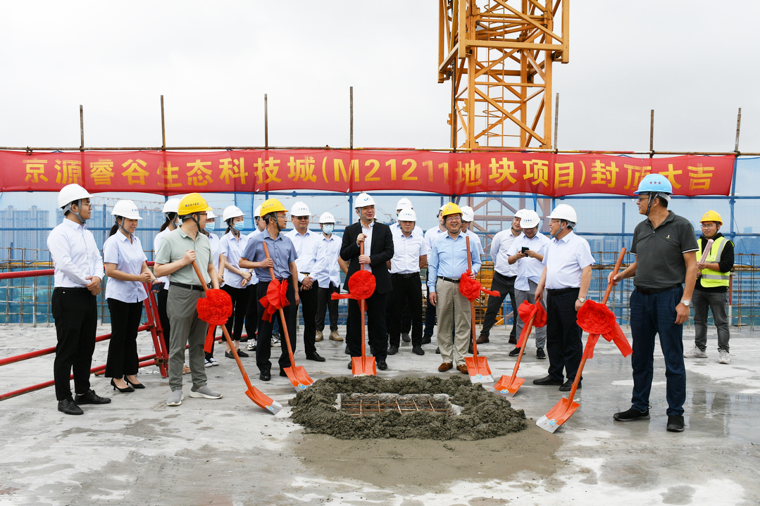 最后,参加仪式的领导嘉宾共同为6号楼主体结构浇筑最后一方混凝土,标志着京源睿谷生态科技城项目全面封顶。